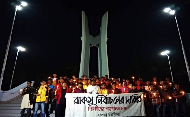 বুধবার (১৩ ডিসেম্বর) সন্ধ্যা সাড়ে পাঁচটায় বিশ্ববিদ্যালয়ের কেন্দ্রীয় শহীদ মিনারে মোমবাতি প্রজ্জ্বলন ও শপথ গ্রহণ কর্মসূচি পালন করেছেন শিক্ষার্থীরা। দাবি আদায় না হওয়া পর্যন্ত আন্দোলন কর্মসূচি চালিয়ে যাবেন বলে শপথ নেন তারা।
