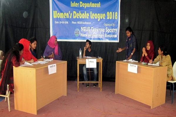 নর্থ ইস্ট ইউনিভার্সিটি বাংলাদেশ ডিবেটিং সোসাইটির উদ্যোগে সংসদীয় রীতিতে এক আন্ত:বিভাগীয় মহিলা লীগ-২০১৮ বিতর্ক প্রতিযোগিতা অনুষ্ঠিত হয়েছে।