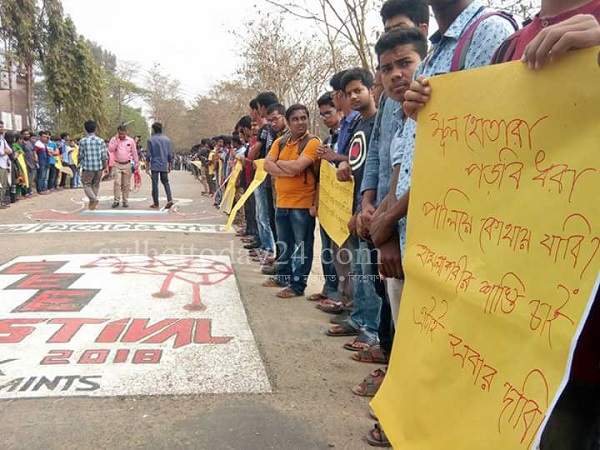 রোববার (৪ মার্চ) সকাল থেকে ক্লাস বর্জন করে বিশ্ববিদ্যালয়ের কেন্দ্রীয় গ্রন্থাগারের সামনে কয়েক হাজার শিক্ষার্থী মানববন্ধন করেন। পরে সকাল ১০টায় গ্রন্থাগারের সামনে থেকে একটি বিক্ষোভ মিছিল শুরু হয়ে সারা ক্যাম্পাস প্রদক্ষিণ করে।