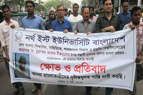 দেশ বরেণ্য সাহিত্যিক, শিক্ষাবিদ, শাহজালাল বিজ্ঞান ও প্রযুক্তি বিশ্ববিদ্যালয়ের অধ্যাপক ড. মুহাম্মদ জাফর ইকবালের উপর সন্ত্রাসী হামলার ঘটনায় নর্থ ইস্ট ইউনিভার্সিটি শিক্ষক-শিক্ষার্থী-কর্মকর্তা-কর্মচারী সমন্বয়ে এক ক্ষোভ ও প্রতিবাদ মিছিল অনুষ্ঠিত হয়েছে।