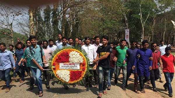 ঐতিহাসিক ৭ মার্চ পালন করেছে শাহজালাল বিজ্ঞান ও প্রযুক্তি বিশ্ববিদ্যালয় ছাত্রলীগ। শাখা ছাত্রলীগ সকাল ১১টায় বঙ্গবন্ধু'র প্রতিকৃতিতে পুষ্পস্তবক অর্পণ করে পরবর্তীতে একটি র্যালি বের করে ছাত্রলীগ। র্যালিটি ক্যাম্পাসের বিভিন্ন সড়ক প্রদক্ষিণ করে লাইব্রেরি ভবনের সামনে এসে সমাবেশে মিলিত হয়।