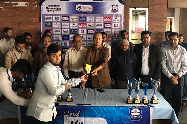 মেট্রোপলিটন ইউনিভার্সিটির দ্বিতীয় ব্যাডমিন্টন টুর্নামেন্টে বিভিন্ন বিভাগে বিজয়ীদের মধ্যে পুরস্কার বিতরণ করা হয়েছে।