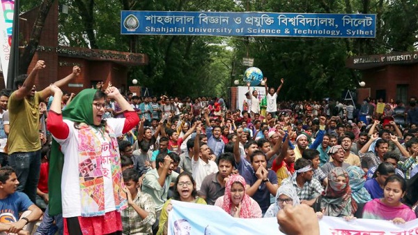 সরজমিনে দেখা গেছে, সকাল থেকে বিশ্ববিদ্যালয়ের কেন্দ্রীয় লাইব্রেরির সামনে জড়ো হতে শুরু করে শিক্ষার্থীরা। ক্লাস বর্জন করে শিক্ষার্থী সেখানে জড় হতে থাকেন। সেখান থেকে ৭টার দিকে শিক্ষার্থীরা প্রধান ফটকের সামনে অবস্থান নেন। আন্দোলনকারীরা ‘বঙ্গবন্ধুর বাংলায় বৈষম্যের ঠাঁই নাই’, ‘পিতা তুমি ফিরে এসো, বৈষম্য দূর করো’সহ নানা স্লোগান দিচ্ছেন।