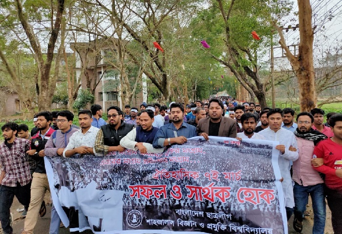 ঐতিহাসিক ৭ মার্চ দিবস উদযাপন করেছে শাহজালাল বিজ্ঞান ও প্রযুক্তি বিশ্ববিদ্যালয় ছাত্রলীগ।