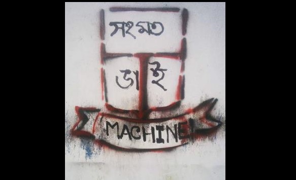 ঢাকা বিশ্ববিদ্যালয়ের রোকেয়া হলের প্রধান গেটের পাশের দেয়ালে আঁকা বিশ্ববিদ্যালয়ের লোগোর আদলে তৈরি করা এই গ্রাফিতিতে লেখা রয়েছে ‘সহমত ভাই’। আর প্রতিষ্ঠানের নামের জায়গায় লেখা ‘মেশিন’।