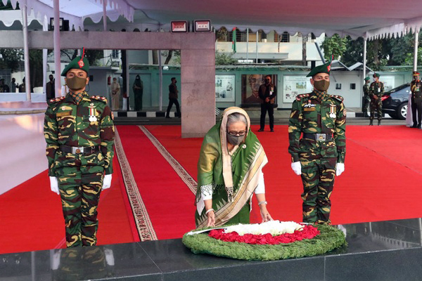 এ সময় জাতির পিতার প্রতি শ্রদ্ধার নিদর্শন স্বরূপ সেখানে কিছুক্ষণ নীরবে দাঁড়িয়ে থাকেন তার তনয়া।
