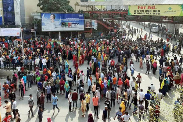 রাজধানীর মিরপুর-১১ নম্বরের কটন টেক্সটাইল নামে একটি গার্মেন্টসের শ্রমিকরা রাস্তা অবরোধ করে বিক্ষোভ কর্মসূচি পালন করছে। ফলে সকাল থেকে যান চলাচল অনেকটাই ব্যাহত হচ্ছে। ভোগান্তিতে পড়েছেন ওই এলাকার মানুষরা।