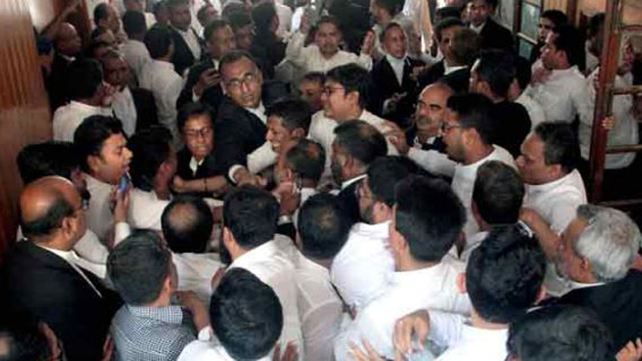 এ সময় কয়েকবার বাইরে থেকে বিএনপিপন্থি আইনজীবীরা কক্ষের বিদ্যুৎ সংযোগও বিচ্ছিন্ন করে দেন।