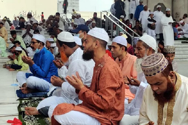 এর আগে সকাল ৮টা ৪৫ মিনিটে শুরু হয় মোনাজাত। ১০ মিনিট ধরে চলা মোনাজাতে আল্লাহ্র কাছে দুহাত তুলে দোয়া করেন ছোট-বড় সব বয়সী মুসল্লিরা।