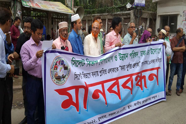 মানববন্ধনে বক্তব্য দেন সিলেট বিভাগ যোগাযোগ ও উন্নয়ন পরিষদের সভাপতি ড. আহমদ আল কবির ও সাধারণ সম্পাদক মো. কুতুব উদ্দিন সোহেল।