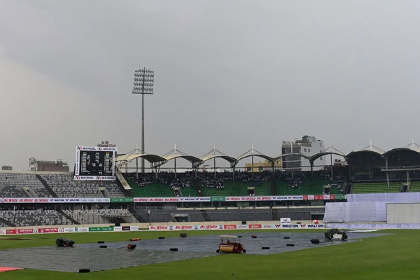 বৃষ্টির কারণে এক সেশনের বেশি সময় বন্ধ ছিল বাংলাদেশ-শ্রীলঙ্কার মধ্যকার ঢাকা টেস্টের তৃতীয় দিনের খেলা। বৃষ্টিতে বন্ধ হলেও ভেজা আউটফিল্ডের কারণে বল গড়ায়নি মাঠে। ম্যাচ অফিশিয়ালরা কয়েক দফা মাঠ পরিদর্শনের পর বিকেল সাড়ে ৩টায় সিদ্ধান্ত জানানো হয়, আবার বৃষ্টি শুরু না হলে ৪টায় শুরু ঢাকা টেস্ট।
