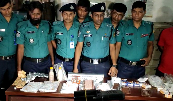 রাজধানীতে গুলশান থানা পুলিশের বিশেষ অভিযানে গাঁজার নির্যাস দিয়ে তৈরি বিভিন্ন খাবার, খাবার তৈরির উপকরণ ও এক তরুণীসহ দুই যুবককে আটক করা হয়েছে।