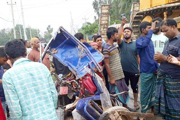 এসময় বিপরীত দিক থেকে আসা একটি দ্রুতগতির একটি ট্রাক অটোরিকশাকে সামনে থেকে ধাক্কা দেয়। এতে অটোরিকশা একদম ভেঙে যায়। এসময় প্রাইভেটকারটির চালক ডান দিকে বের হওয়ার চেষ্টা করে। কিন্তু ট্রাকটি ডান দিকে চলে এলে কারের সামনের অংশ সেটির নিচে ঢুকে যায়।