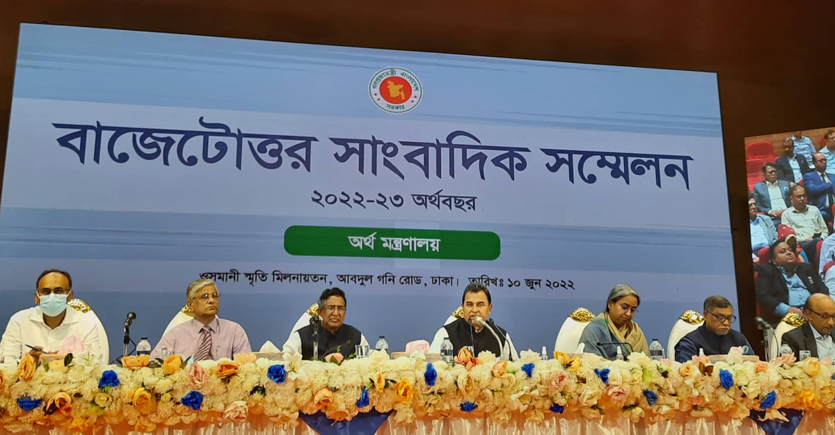 শুক্রবার (১০ জুন) বিকেল সাড়ে ৩টায় জাতীয় সংসদে উত্থাপিত ২০২২-২৩ অর্থবছরের প্রস্তাবিত বাজেট নিয়ে সংবাদ সম্মেলনে এ কথা জানান অর্থমন্ত্রী। করোনাভাইরাস সংক্রমণ পরিস্থিতির কারণে গত বছর এই সংবাদ সম্মেলন ভার্চুয়াল উপায়ে হলেও এ বছর অর্থমন্ত্রী সশরীরেই সংবাদ সম্মেলন করছেন।