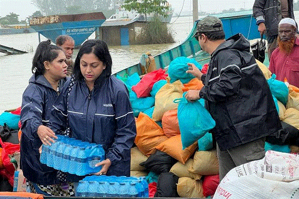এবার সিলেটে ছুটে গেল বাংলদেশের শিল্পীর সদস্যরা। রিয়াজ, নিপুণ, সাইমন, জেসমিনসহ একটি টিম সিলেটে রয়েছে বর্তমানে। সেখানে তারা গৌয়াইন ঘাট, লক্ষীনগর, মেওয়ার কান্তি এলাকায় ২৫০০ পরিবারের হাতে ত্রাণ তুলে দিয়েছেন। অসহায়দের দিয়েছেন নগদ টাকাও।
