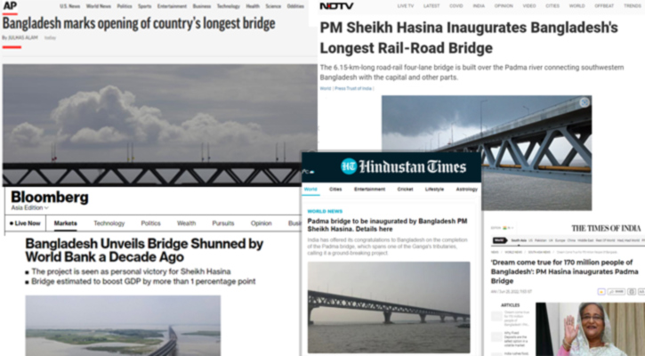 বাংলাদেশের অর্থনৈতিক সক্ষমতার প্রতীক পদ্মা সেতুর উদ্বোধনের খবর বিশ্বমিডিয়ায় স্থান পেয়েছে।