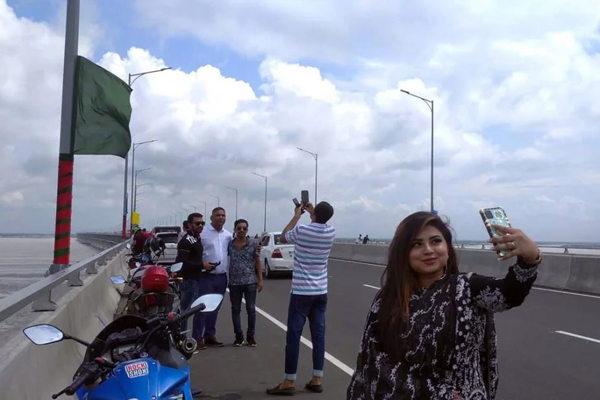 রোববার (২৬ জুন) সকালে পদ্মা সেতুর মাঝামাঝিতে সরেজমিনে দেখা যায়, পদ্মা সেতু দেখতে আসা বেশিরভাগ মানুষ গাড়ি থামিয়ে একক ও দলগত ছবি তুলছেন। কয়েকটি বাস থামিয়েও যাত্রীদের নেমে ছবি তুলতে দেখা যায়।
