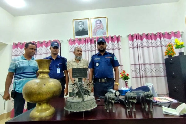 শরীয়তপুরের পুলিশ সুপার এস এম আশরাফুজ্জামান জানান, বাসের যাত্রী জসিম উদ্দিনের কাছ থেকে শত বছরের পুরোনো অনেক মূল্যবান তিনটি সিংহের মূর্তি, কারুকাজ করা একটি কলস, বিভিন্ন ধরনের পুরাকীর্তি ও দুটি ভিডিও ক্যামেরা উদ্ধার করা হয়। এসব মূল্যবান পুরাকীর্তি পরিবহনের অভিযোগে জসিম উদ্দিনকে আটক করা হয়েছে। তবে এসব পণ্যের কোনো ধরনের বৈধ কাগজপত্র দেখাতে পারেননি তিনি।