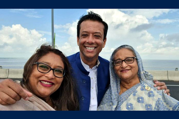 প্রধানমন্ত্রীর সঙ্গে তার ছেলে সজীব ওয়াজেদ জয় ও মেয়ে সায়মা ওয়াজেদ পুতুলসহ পরিবারের সদস্যরা রয়েছেন।