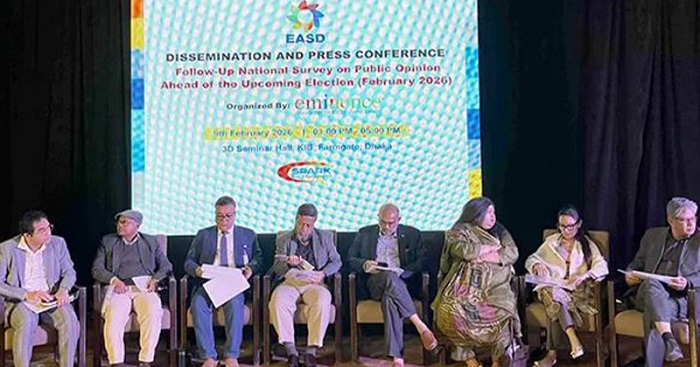 আজ সোমবার বিকেলে রাজধানীর কৃষিবিদ ইনস্টিটিউশনের থ্রিডি সেমিনার হলে ইএএসডির এই জরিপের ফলাফল প্রকাশ করা হয়। ইএএসডির দাবি, এবারের নির্বাচন নিয়ে যতগুলো জরিপ হয়েছে, সেগুলোর মধ্যে তাদের এই জরিপটিই সবচেয়ে বড় নমুনার জরিপ।