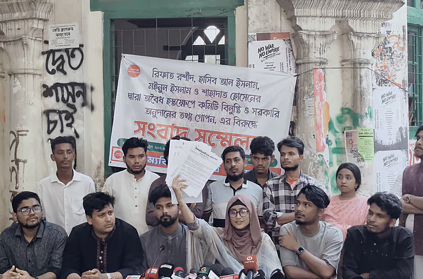 বৈষম্যবিরোধী ছাত্র আন্দোলনের মুখপাত্র সিনথিয়া জাহীন আয়েশা, জ্যেষ্ঠ যুগ্ম সাধারণ সম্পাদক মাশরাফি ও সম্মিলিত বেসরকারি বিশ্ববিদ্যালয়ের আহ্বায়ক আতিক শাহরিয়ার বৃহস্পতিবার (২৩ এপ্রিল) বিকেলে ঢাকা বিশ্ববিদ্যালয়ের মধুর ক্যানটিনের সামনে সংবাদ সম্মেলন করে এ অভিযোগ করেন।