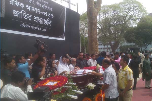 সকাল ১০টা থেকে কেন্দ্রীয় শহীদ মিনারে সম্মিলিত সাংস্কৃতিক জোটের পক্ষ থেকে এ নাগরিক শ্রদ্ধানুষ্ঠানের আয়োজন করা হয়। এরপর দুপুর সাড়ে ১২টার দিকে রফিক আজাদের মরদেহ নিয়ে যাওয়া হয় তার এক সময়ের কর্মস্থল বাংলা একাডেমিতে।