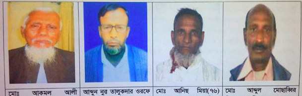 আসামিরা হলেন- মো. আকমল আলী তালুকদার (৭৬), আব্দুন নুর তালুকদার ওরফে লাল মিয়া (৬২), মো. আনিছ মিয়া (৭৬) ও মো. আব্দুল মোছাব্বির মিয়া (৬৪)।
