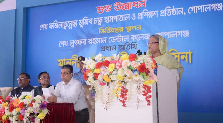 শনিবার (৩০ এপ্রিল) বেলা পৌনে ১২টার দিকে গোপালগঞ্জ সদর উপজেলার ঘোনাপাড়ায় শেখ ফজিলাতুন্নেছা মুজিব চক্ষু হাসপাতাল ও প্রশিক্ষণ কেন্দ্রে এক সমাবেশে প্রধানমন্ত্রী এসব কথা বলেন। সমাবেশের আগে তিনি অত্যাধুনিক এই হাসপাতালের উদ্বোধন করেন।