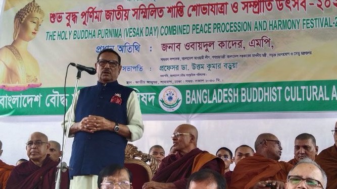 বৃহস্পতিবার (৪ মে) সকালে রাজধানীর জাতীয় জাদুঘরের সামনে শুভ বুদ্ধপূর্ণিমা উপলক্ষে জাতীয় সম্মিলিত শান্তি শোভাযাত্রা ও সম্প্রীতি উৎসবে এ কথা বলেন তিনি।