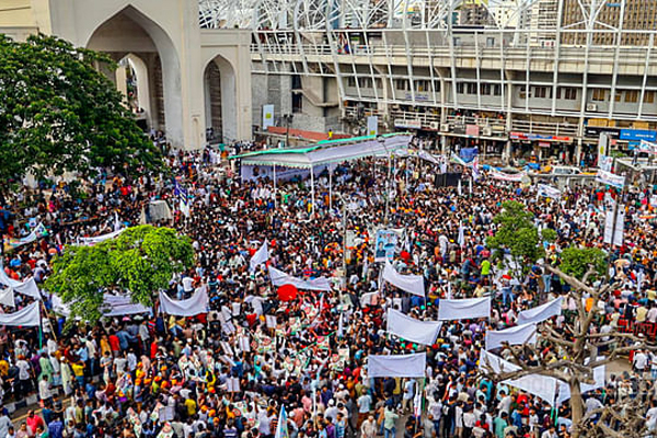 জাতীয় মসজিদ বায়তুল মোকাররমের দক্ষিণ গেটে আজ বৃহস্পতিবার (২৭ জুলাই) শান্তি সমাবেশের ডাক দিয়েছিল আওয়ামী লীগ। তবে পুলিশ তাতে আপত্তি জানায় এবং অন্য কোনো মাঠে সমাবেশ করার পরামর্শ দেয়।