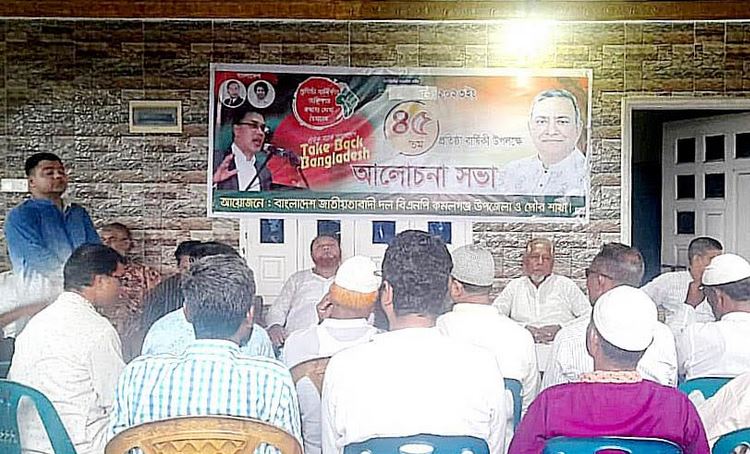 বাংলাদেশ জাতীয়তাবাদী দল-বিএনপির ৪৫ তম প্রতিষ্ঠাবার্ষিকী উপলক্ষে মৌলভীবাজারের কমলগঞ্জে বিএনপির দুই গ্রুপের পৃথক পৃথক আলোচনা সভার আয়োজন করে। এ উপলক্ষে শুক্রবার (১ সেপ্টেম্বর) বিকাল ৫টায় কমলগঞ্জ উপজেলা বিএনপি নেতা ইয়াকুব আলী সিরাজির কাজী বাড়িতে জেলা বিএনপি অনুমোদিত কমলগঞ্জ উপজেলা ও পৌর বিএনপির উদ্যোগে এ আলোচনাসভা অনুষ্ঠিত হয়। এতে প্রধান অতিথি ছিলেন কমলগঞ্জ উপজেলা বিএনপির নবনির্বাচিত সভাপতি গোলাম কিবরিয়া শফি।