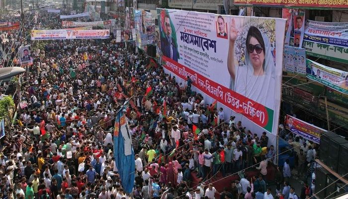 রঙিন টুপি পরে, ব্যানার, ফেস্টুন, প্ল্যাকার্ড ও দলের শীর্ষ নেতাদের প্রতিকৃতি হাতে নিয়ে তারা সমাবেশস্থলে এসে সরকারবিরোধী স্লোগান দিতে থাকেন।