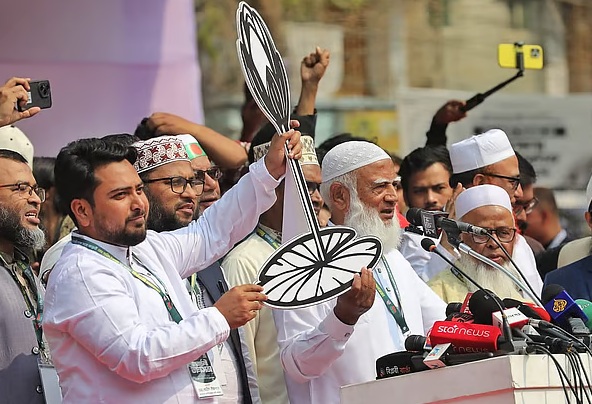 রোববার (৮ ফেব্রুয়ারি) রাজধানীর মেরুল বাড্ডায় ডিআইটি প্রজেক্ট খেলার মাঠে নির্বাচনি জনসভায় শফিকুর রহমান এই ঘোষণা দেন। এ সময় তিনি নাহিদ ইসলামের হাতে শাপলা কলি প্রতীকও তুলে দেন।