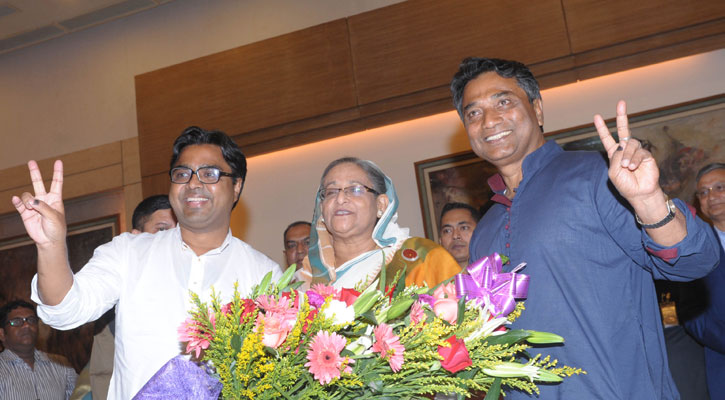 প্রধানমন্ত্রী বিজয়ী হওয়ার জন্য ঢাকা উত্তরের মেয়র আনিসুল হক ও দক্ষিণের মেয়র সাঈদ খোকনকে অভিনন্দন জানান। এ সময় দুই মেয়রের পরিবারের সদস্যরাসহ আওয়ামী লীগের র্শীষ নেতারা উপস্থিত ছিলেন।