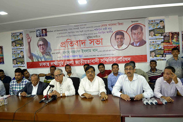 বুধবার (১৮ এপ্রিল) জাতীয় প্রেসক্লাবের কনফারেন্স লাউঞ্জে বুধবার সন্ধ্যায় বিএনপি চেয়ারপারসন বেগম খালেদা জিয়া, জাতীয়তাবাদী স্বেচ্ছাসেবক দলের সভাপতি শফিউল বারী বাবু ও সাংগঠনিক সম্পাদক ইয়াসিন আলীর মুক্তির দাবিতে প্রতিবাদ সভায় তিনি এসব কথা বলেন। সভার আয়োজন করে ঢাকাস্থ লক্ষ্মীপুর জেলা জাতীয়তাবাদী সম্মিলিত পরিষদ।