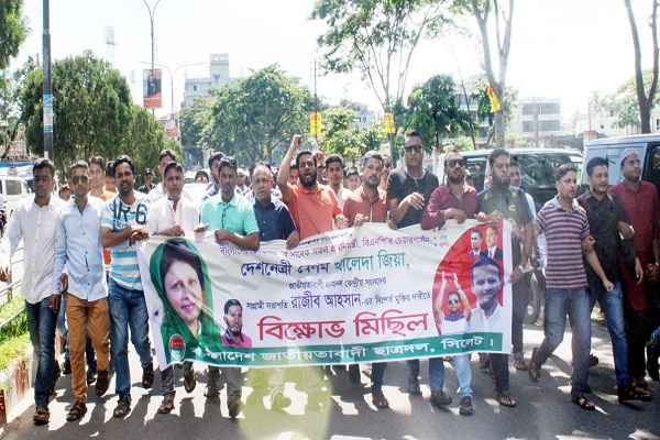 বেগম খালেদা জিয়া ও কেন্দ্রীয় ছাত্রদলের সভাপতি রাজীব আহসানের মুক্তির দাবিতে সিলেট ছাত্রদলের উদ্যোগে নগরীর এক বিক্ষোভ মিছিল বের করা হয়।