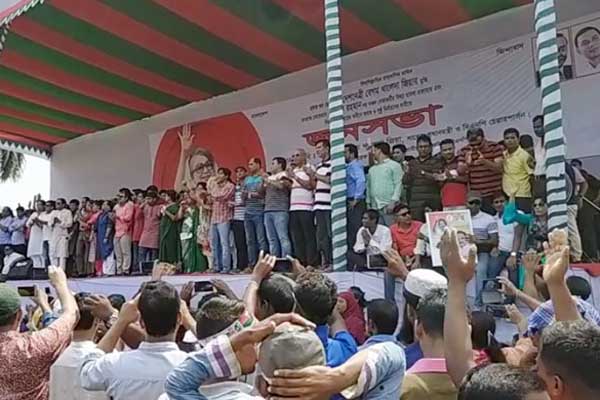 সময় গড়ানোর সঙ্গে সঙ্গে বাড়ছে নেতাকর্মীদের ভিড়। জনসভাস্থলে ঢুকছে খণ্ড খণ্ড মিছিল। নেতাকর্মীদের হাতে দেখা যাচ্ছে নানা রঙ-বেরঙের ও স্লোগান লেখা ব্যানার-ফেস্টুন-প্ল্যাকার্ড।