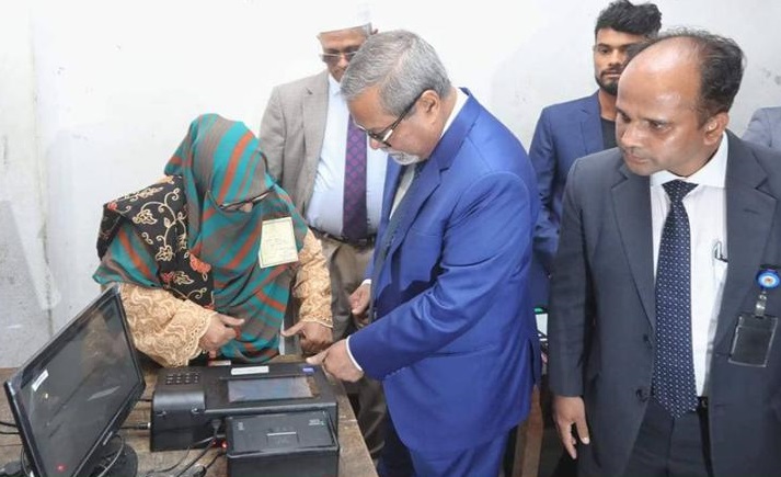 সহকারী প্রিজাইডিং কর্মকর্তা সিদ্দিকা বুলবুল এ বিষয়ে বলেন, ‘সিইসির প্রথম দুটি বৃদ্ধাঙুলির ছাপ নেওয়ার চেষ্টা করা হয়। তবে তা ম্যাচ করেনি। পরে আমরা আর চেষ্টা করিনি। তাড়াহুড়োর কারণে এবং ভোটার প্রক্রিয়া দ্রুত সম্পন্ন করার জন্য আমরা তার এনআইডি নম্বর দিয়ে ভোট নিয়েছি।’