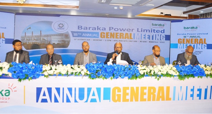 প্রবাসী বাংলাদেশিদের উদ্যোগে প্রতিষ্ঠিত বাংলাদেশের বিদ্যুৎ উৎপাদনকারী প্রতিষ্ঠান বারাকা পাওয়ার লিমিটেড-এর ১৮তম বার্ষিক সাধারণ সভা (হাইব্রিড সিস্টেম) কোম্পানি সেক্রেটারি মোহাম্মদ সাইফুল ইসলাম চৌধুরীর সঞ্চালনায় বুধবার নগরের হোটেল রয়েল মার্কে অনুষ্ঠিত হয়।