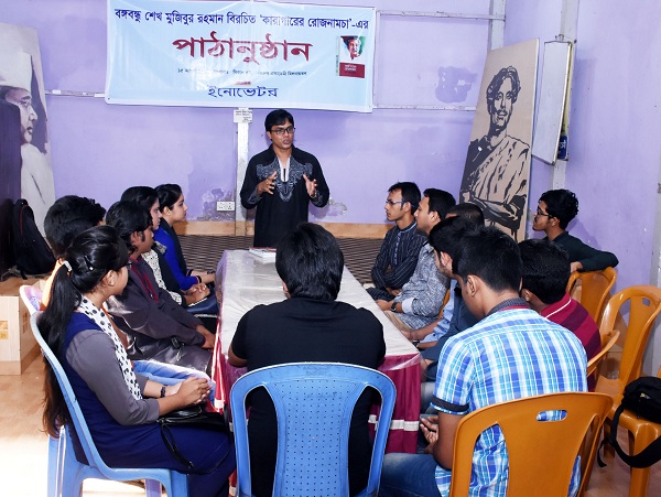 মঙ্গলবার বিকেলে জিন্দাবাজারস্থ নজরুল একাডেমি মিলনায়তনে এই পাঠানুষ্ঠান অনুষ্ঠিত হয়। এতে নির্বাচিত গ্রন্থ ছিল শেখ মুজিবুর রহমানের ‘কারাগারের রোজনামচা’। পাঠানুষ্ঠানে বক্তারা বলেন, বঙ্গবন্ধুর জীবন, কর্ম ও আদর্শকে না জেনে বাংলাদেশকে ভালোবাসা যায় না। দেশকে ভালোবাসতে হলে শেখ মুজিবকে ভালোবাসতে হবে। সেজন্য তার রচিত গ্রন্থগুলো পাঠের বিকল্প নেই। তারা বলেন, মুক্ত বঙ্গবন্ধুর মতোই কারাবন্দি বঙ্গবন্ধু সবসময় ছিলেন সমাজ ও রাজনীতির একনিষ্ঠ কর্মী। তিনি জেলে বসেও ভেবেছেন বাঙালীর মুক্তির কথা।