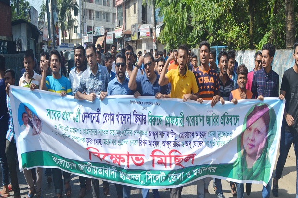 বিএনপির চেয়ারপার্সন, সাবেক প্রধানমন্ত্রী বেগম খালেদা জিয়ার বিরুদ্ধে গ্রেপ্তারি পরোয়ানা দায়েরের প্রতিবাদে কেন্দ্রীয় কর্মসূচির অংশ হিসেবে নগরীতে সিলেট জেলা ও মহানগর ছাত্রদলের বিক্ষোভ মিছিল ও সমাবেশ অনুষ্ঠিত হয়েছে।