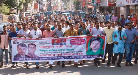 বিএনপি’র চেয়ারপার্সন বেগম খালেদা জিয়া’র বিরুদ্ধে ষড়যন্ত্র বন্ধ ও বাবু, জুয়েলের মামালা প্রত্যাহারে দাবীতে মঙ্গলবার দুপুরে জাতীয়তাবাদী স্বেচ্ছাসেবকদলের উদ্যোগে সিলেট নগরীতে বিক্ষোভ মিছিল ও সমাবেশ অনুষ্ঠিত হয়।
