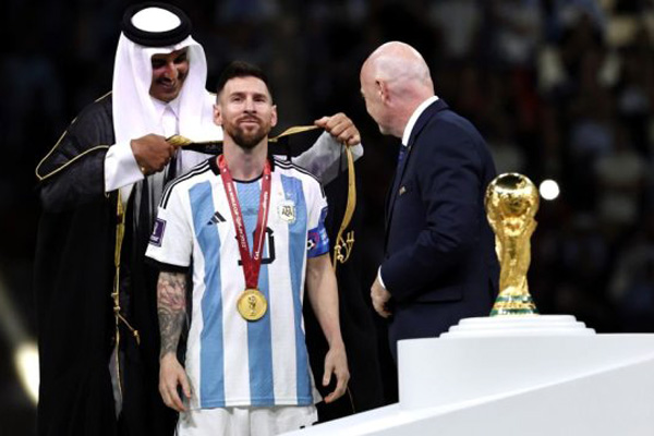 রুদ্ধশ্বাস ফাইনালে টাইব্রেকে ফ্রান্সকে ৪-২ গোলে হারিয়ে ১৯৮৬ সালের পর লাতিন শক্তি আর্জেন্টিনার চ্যাম্পিয়ন হওয়ার পর তাদের হাতে বিশ্বসেরার ট্রফি তুলে দেন ফিফা সভাপতি জিয়ান্নি ইনফান্তিনো। সেটি দেয়ার আগে কাতারের আমির মেসির গায়ে চাপান তাদের পোশাক, যেটি পরিচিত বিশত নামে।