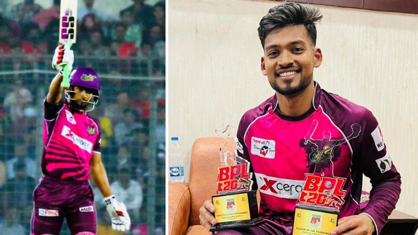 প্লেয়ার অব দ্য টুর্নামেন্ট হয়েছেন নাজমুল হোসেন শান্ত। ৪ ফিফটিতে ৫১৬ রান করা শান্ত পেয়েছেন ১০ লাখ টাকা। আসরের সর্বোচ্চ রান সংগ্রাহকের পুরস্কার ৫ লাখ টাকাও জিতেছেন তিনি।