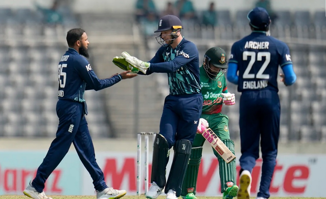 টস জিতে ব্যাটিংয়ে নেমে শুরুটা একেবারে মন্দ ছিল না বাংলাদেশের। ২ উইকেট খুইয়ে একশর কাছাকাছি পৌঁছে গিয়েছিল তারা। কিন্তু নাজমুল হোসেন শান্ত বাদে বাকি ব্যাটাররা ইনিংস লম্বা করতে ব্যর্থ হলো। নিয়মিত বিরতিতে উইকেট তুলে নেওয়া ইংল্যান্ডের বোলাররা শেষদিকে চড়াও হয়ে অল্পতে বেঁধে ফেলল স্বাগতিকদের।