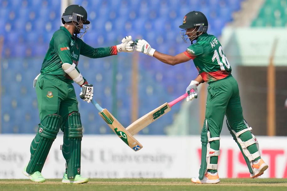শুরতেই দুই উইকেট হারিয়ে খানিকটা দিশেহারা হয়ে পড়ে বাংলাদেশ। অতপর তৃতীয় উইকেট জুটিতে চাপ সামলে নেন মুশফিকুর রহিম ও নাজমুল হোসেন শান্ত। দুজনই অর্ধশতক তুলে নেন। জুটিতে গড়েন ৯৮ রান। এরপর এক পর্যায়ে সিঙ্গেল নেওয়ার জন্য অন স্ট্রাইক থেকে স্ট্রাইক প্রান্তে চলে আসেন। পরক্ষণে দৌঁড় দিলেও পৌঁছাতে পারেননি শান্ত। আউট হন ৭১ বলে ৫৩ রানে।