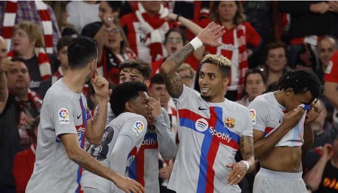 রোববার (১২ মার্চ) রাতে লিগ ম্যাচটি ১-০'তে জিতে রিয়াল মাদ্রিদকে ফের ৯ পয়েন্ট পেছনে ফেলেছে কাতালান জায়ান্টরা। প্রথমার্ধের যোগ করা সময়ে রাফিনিয়া ব্যবধান গড়ে দেওয়া গোলটি করেন।