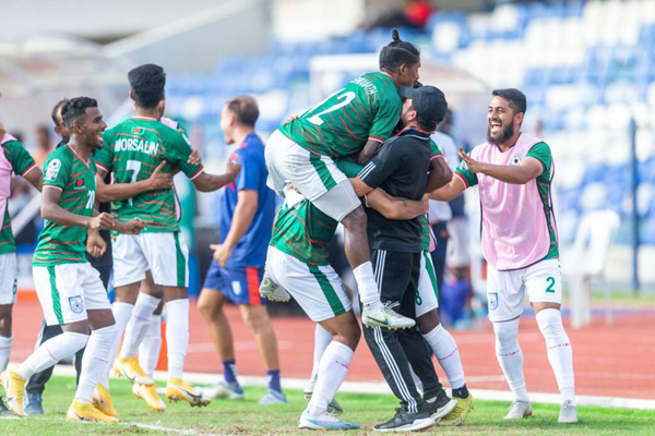 শুরু থেকেই দারুণ ফুটবল খেলছিল বাংলাদেশ। কিন্তু ধারার বিপরীতে হুট করেই হজম করে গোল। সে ধাক্কা সামলে নিয়ে দারুণভাবে ঘুরে দাঁড়িয়ে মালদ্বীপের বিপক্ষে অসাধারণ এক জয় তুলে নিয়েছে বাংলাদেশ।