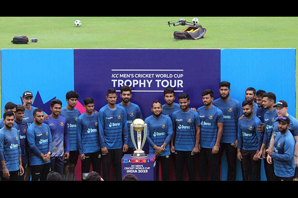 একসঙ্গে তোলার পর আলাদা করেও ছবি তোলেন ক্রিকেটাররা। কখনো তানজিম হাসান সাকিব তো কখনো ফটোগ্রাফারের দায়িত্ব নেন রিশাদ হোসেন। ট্রফি ছেড়ে যাওয়ার আগে তাতে চুমুই এঁকে দেন শামীম হোসেন পাটোয়ারী। ট্রফি সামনে রেখে নিজের অনুভূতি জানিয়েছেন মুশফিকুর রহিমও। অভিজ্ঞতা আর তারুণ্যের মেলবন্ধনে বিশ্বকাপে বাংলাদেশের স্বপ্নের সীমানাও ছড়িয়ে দিয়ে গেছেন এই অভিজ্ঞ ক্রিকেটার।