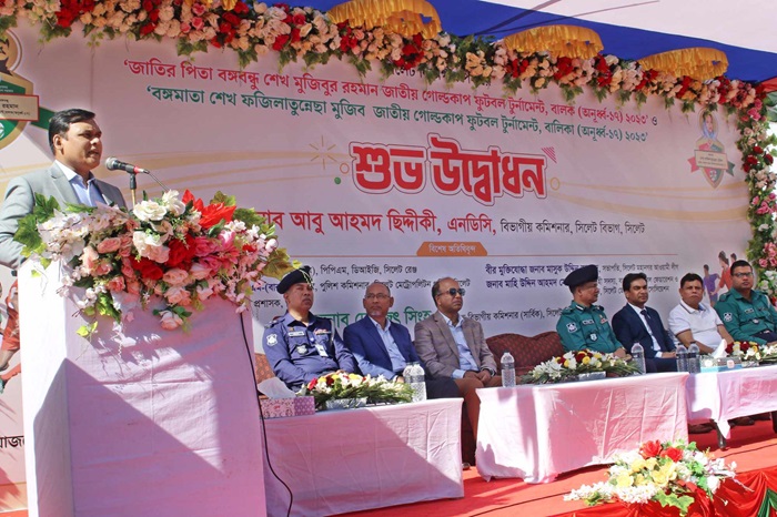 সিলেট বিভাগীয় পর্যায়ে ‘জাতির পিতা বঙ্গবন্ধু শেখ মুজিবুর রহমান জাতীয় গোল্ডকাপ ফুটবল টুর্নামেন্ট বালক (অনূর্ধ্ব-১৭) ২০২৩’ ও ‘বঙ্গমাতা শেখ ফজিলাতুন্নেছা মুজিব জাতীয় গোল্ডকাপ ফুটবল টুর্নামেন্ট বালিকা (অনূর্ধ্ব-১৭) ২০২৩’ এর উদ্বোধন হয়েছে।